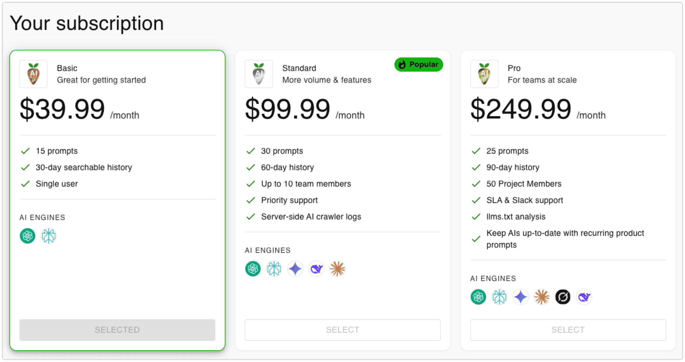 Cairrot gives clarity to Answer Engine Optimization (AEO) campaigns at a fraction of the price of competitors