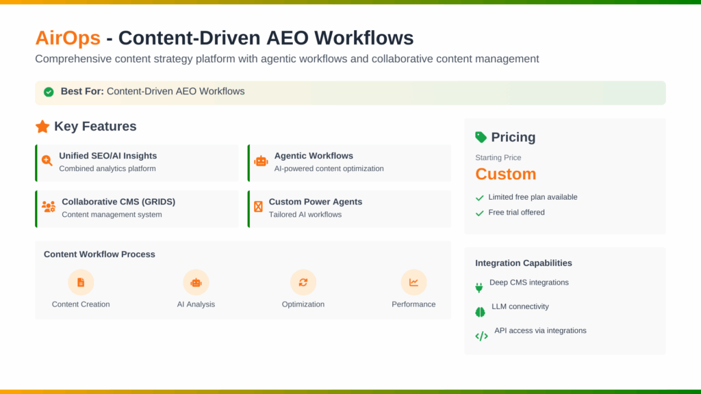 AirOps is less of a pure rank tracker and more of a content operations platform that has AEO baked in. It’s designed for teams that need to scale the creation of AEO-optimized content.
