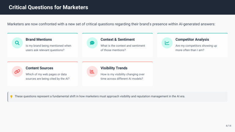 AthenaHQ is for teams that want to be on the absolute bleeding edge and have the budget for it. The lack of an API and public integrations makes it a bit of a walled garden, which can be a challenge for agencies needing to integrate data. It’s a powerful but expensive tool for those who want AI to not just track, but also strategize.