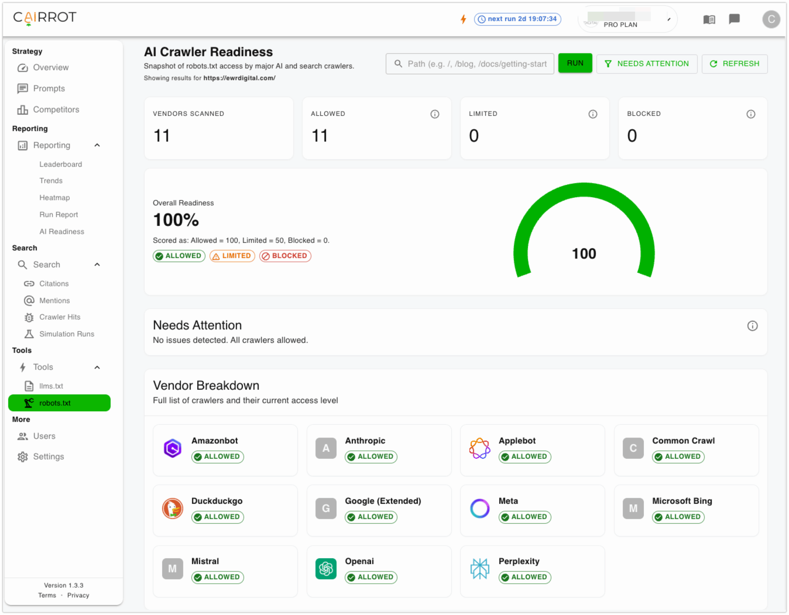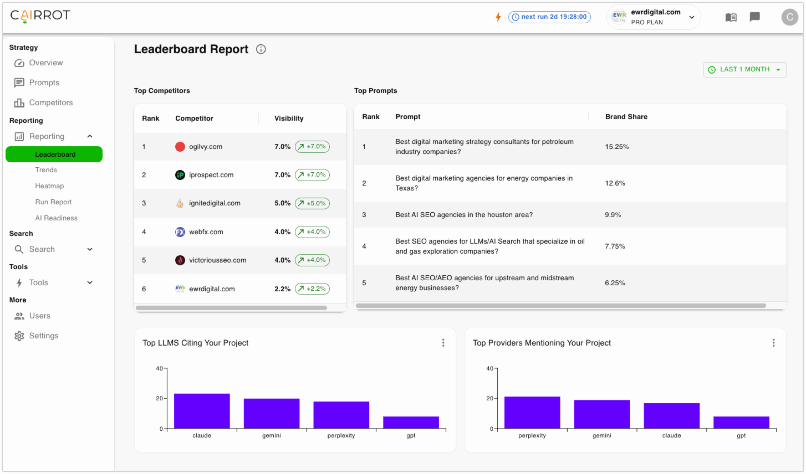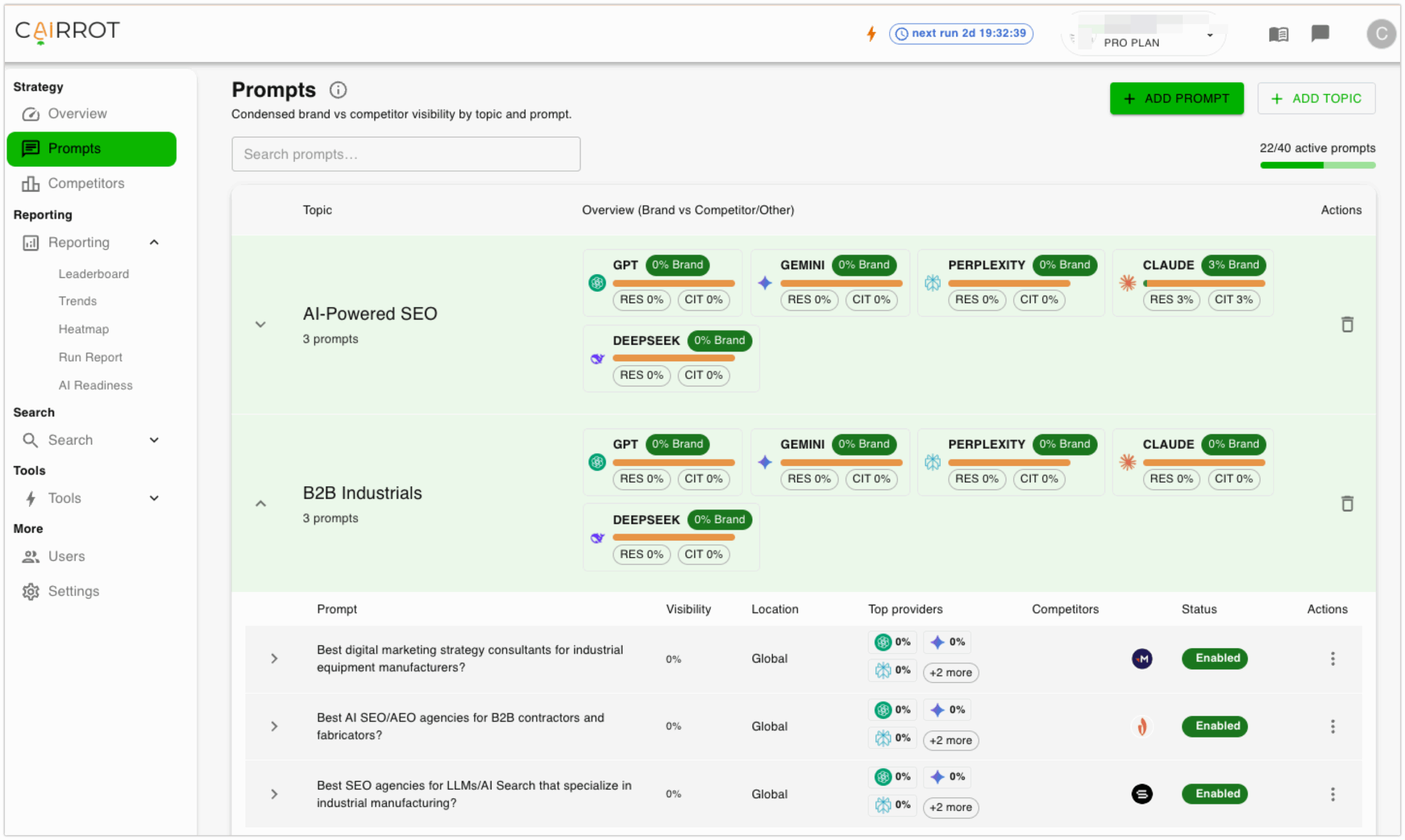 Cairrot changed the way we send proposals and track progress for our clients looking for LLM visibility. The prompt tracking and visibility benchmarks look great on reports, and the AI Readinesss section is full of great insights for AEO. The Heatmap Reports that were added a couple of updates ago have been a hit on our monthly reports with AEO clients.