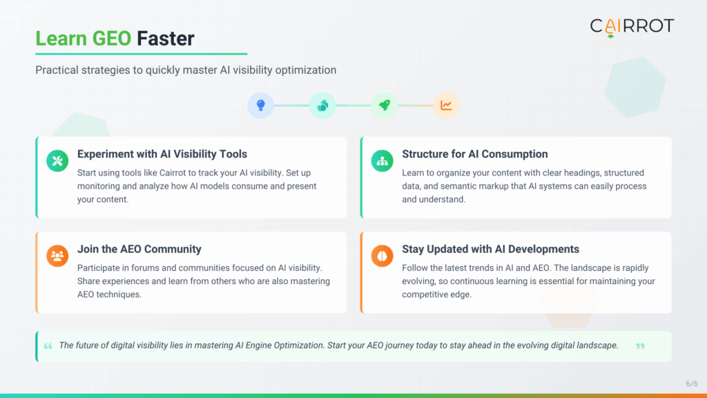 The field of GEO is evolving at a breakneck pace, but you can get up to speed quickly by focusing on a combination of foundational knowledge, practical application, and following the right experts. Here are some tips to accelerate your learning: